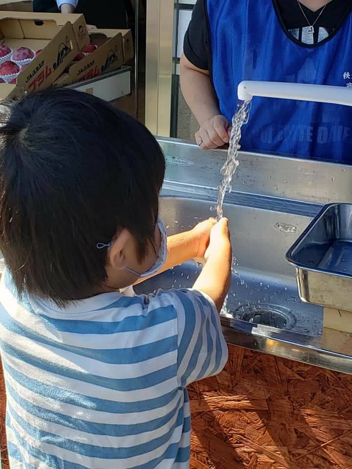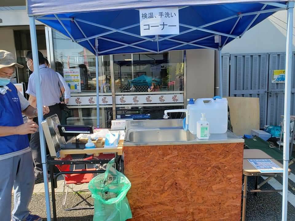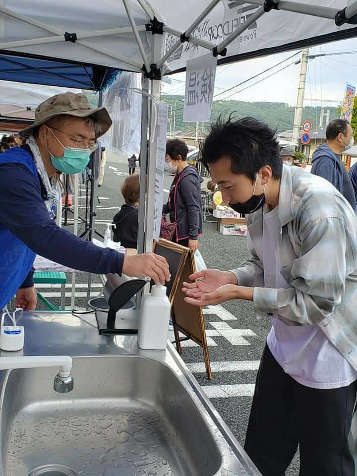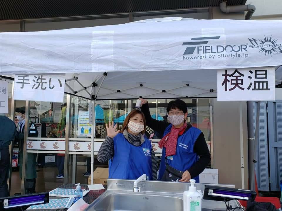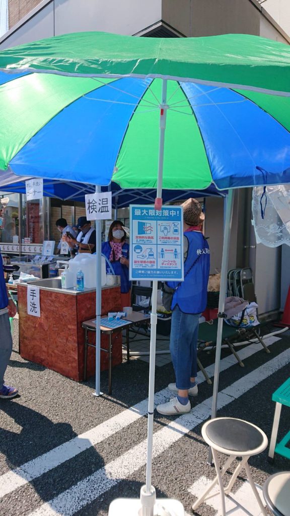 感染症予防対策として、出店者とお客様の検温を行っています。アルコール消毒もあります。手洗いは、ブラックライトを使用して、ご自分の洗い残りが目で見られます。(冬期は手洗いはお休みで、検温とアルコール消毒のみです)